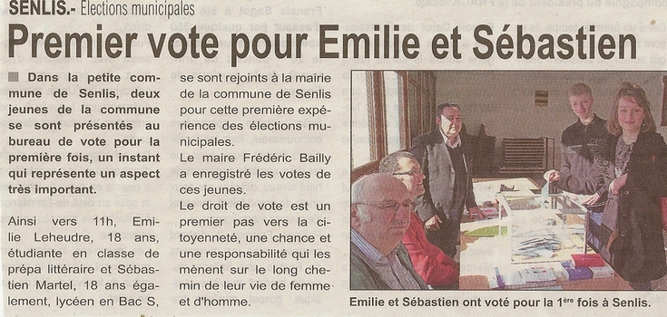13 janvier 2014: " article paru dans - La voix du nord - commune de Senlis